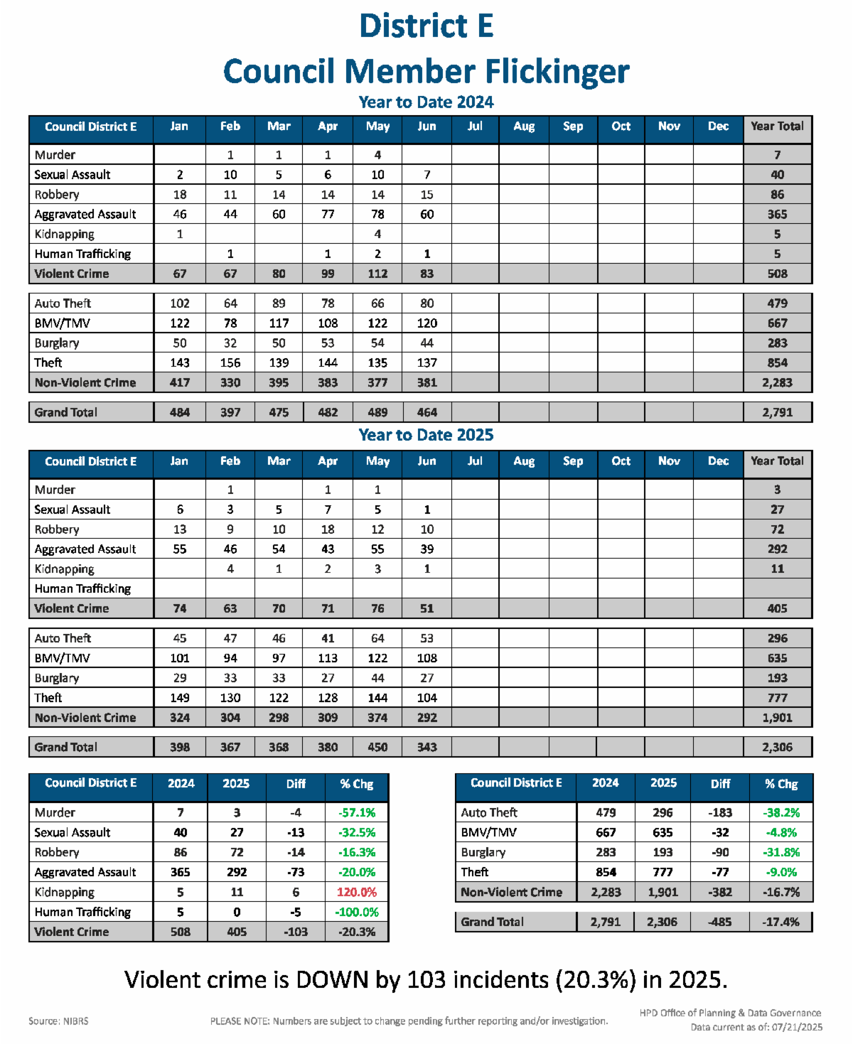 | | HPD Crime Statistics for District E | | |