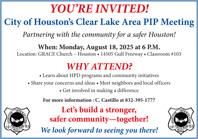 Additionally, resident participation in the Houston Police Department’s “Positive Interaction Program” (PIP) meetings is highly encouraged. These monthly meetings provide direct engagement with local officers, updates on crime trends, and insights into how HPD is actively working to improve community safety.