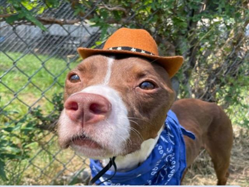 Meet Pinto! The 1-year-old brown and white Staffordshire Bull Terrier mix with a heart as big as Texas and a curious nose for adventure.