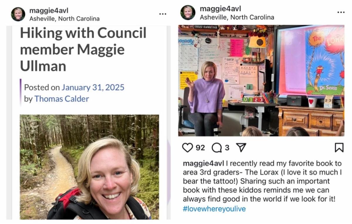 I invite you to stay connected with me on social media (Maggie4Avl). I’m actively discussing policies that enhance community resiliency through my Rapid Recap segment, sharing events and information you can use, and highlighting the incredible, uplifting spirit of our Asheville community. A few personal highlights include a recent opportunity to read and share the message of “The Lorax,’ to some area school children, and a fun interview I did with @mountainxpress on one of my beloved pastimes.