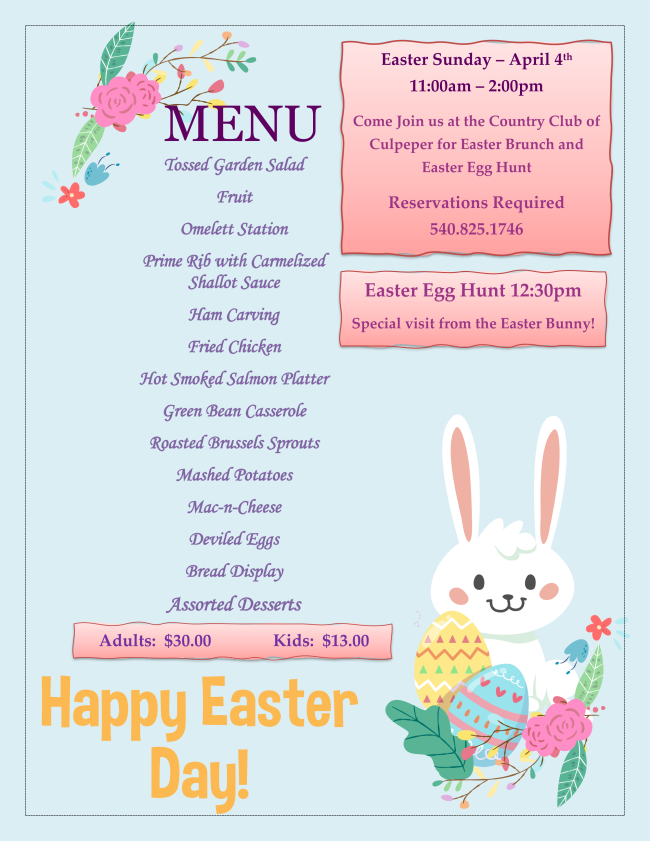 It is such a busy and beautiful time of year! The staff is working hard to get ready for the upcoming season and we are so excited! Covid regulations have relaxed a bit and we are able to have 50 person gatherings inside and 100 person gatherings outside. Masks and social distancing rules still apply. We are looking forward to our Easter Brunch celebration including a visit by a certain cotton-tailed bunny!