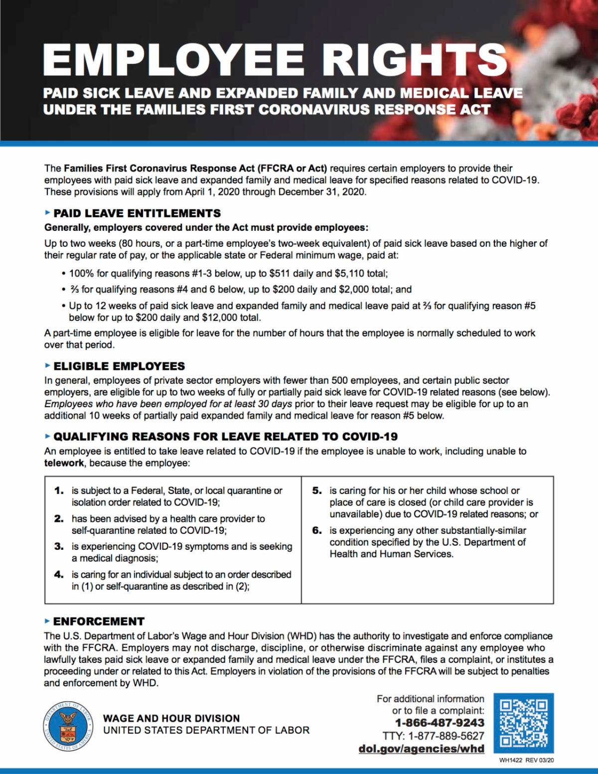 TO READ THE FULL DETAILS OF THE FAMILY FIRST CORONAVIRUS RESPONSE ACT (FFCRA) POLICY.