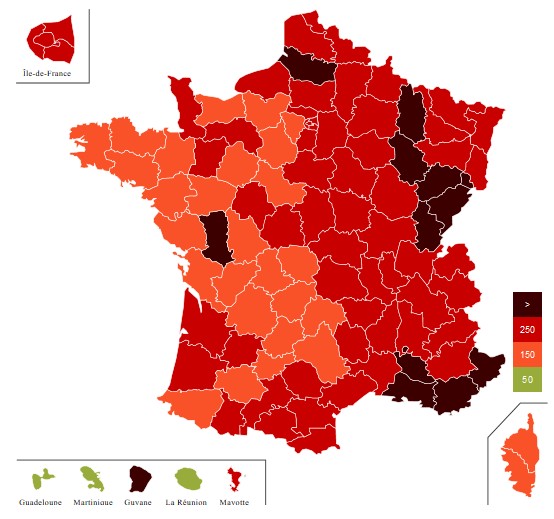 Taux de réalisation : 3.187/100.000 hab. ↓ (3.237le 14/01)