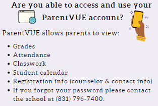 Thank you to all the parents who attended the SUHSD Annual Mental Health Matters Virtual Conference November 14-19. The conference was an opportunity to increase awareness and support for parents, caregivers, students, and families. It was hosted by the Special Project Department and Pupil Personnel Services Department, sessions were provided during the evening in English and Spanish by presenters from Monterey County Behavioral Health, the Epicenter, CSUMB, and SUHSD staff, including school social workers. This year’s topics included: understanding the experience of LGBTQ+ youth, the impact of trauma and resilience on students, grief and loss, suicide prevention, anxiety, and depression. Click here to view all the presentations from the conference.