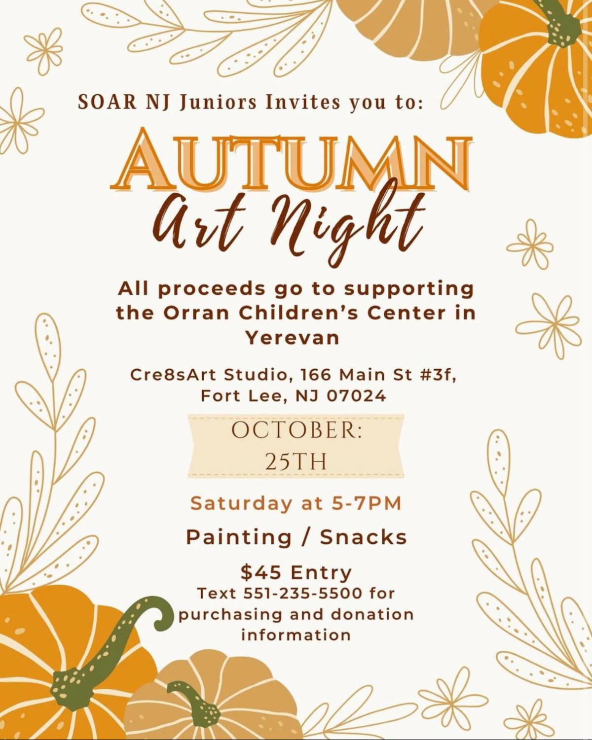 Valued Supporter, we invite you to immerse yourself in an evening of creativity and compassion at our Autumn Art Night, a vibrant celebration where every brushstroke and every ticket contributes directly to transforming the lives of vulnerable children at the Orran Children's Center in Yerevan*.