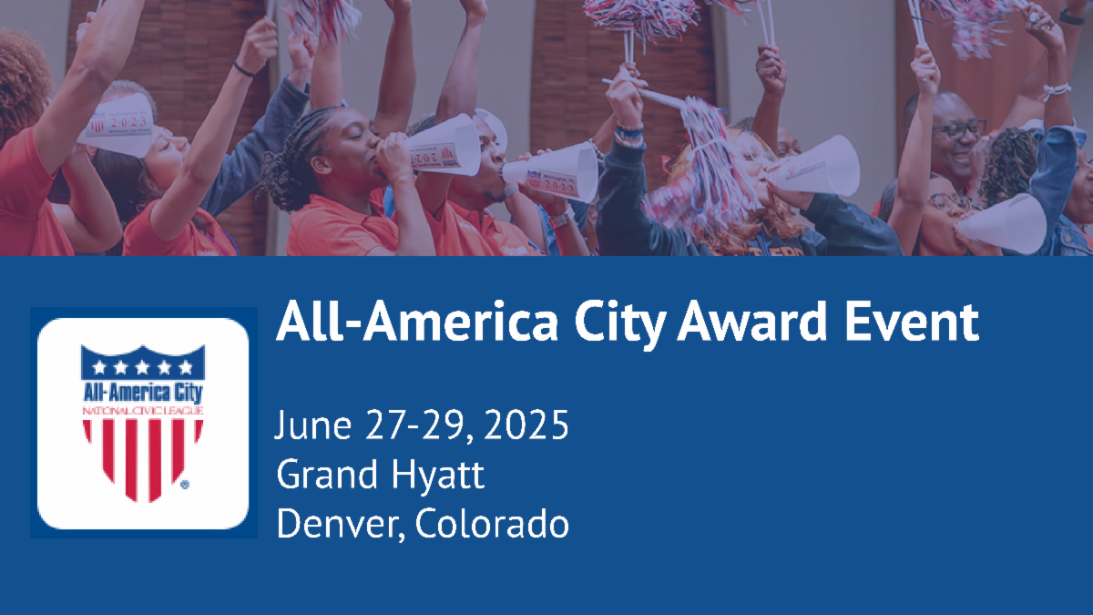 Join the League and our Center for Democracy Innovation in Denver, June 27–29! Start with the Democracy Innovations Workshop, where you'll learn how to communicate the value of a more participatory democracy and explore cutting-edge democracy innovations from across the U.S. and around the world. The workshop leads into the All-America City Award event, once again offering one of the most inspiring, informative, and relationship-building experiences on the democracy calendar.