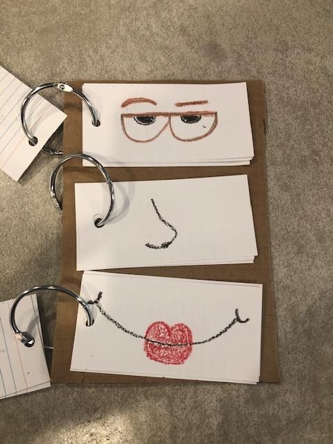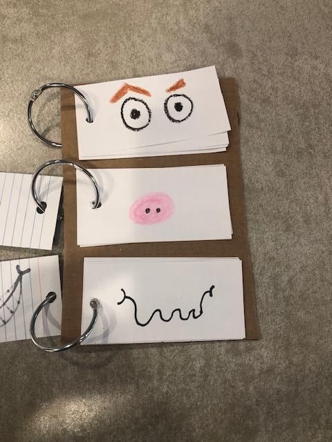 When you are finished drawing all of your different facial features flip through your funny face flip book to combine different features together to make silly faces!