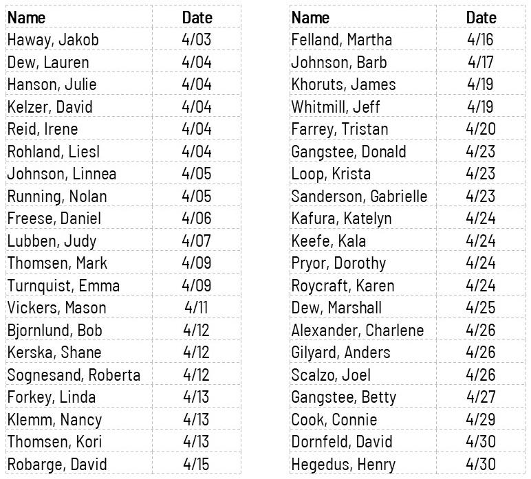 Sign up at the Welcome Center. The deadline is this Sunday, April 13th.
