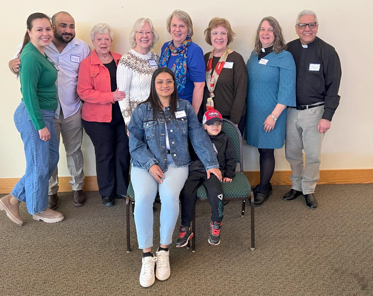 Back row: Cata and Angel (friends), sponsors Margaret Wold, Cindy Dogen, Beth Grosen, Laurie Sanderson, Pastor Melissa and Deacon Josue.