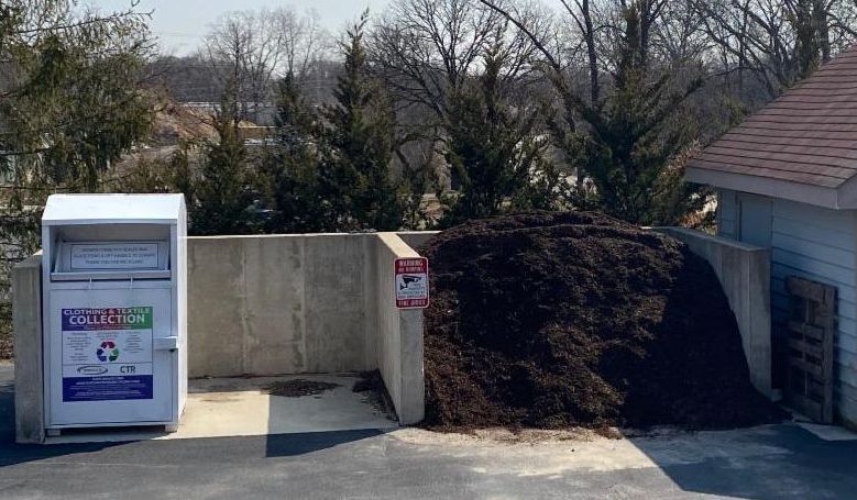 Self-serve mulch is available on a first-come, first-served basis. The mulch pile is next to the textile recycling bin in the same lot as the road salt.
