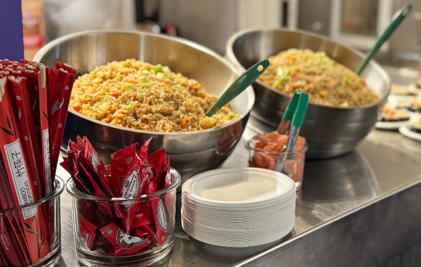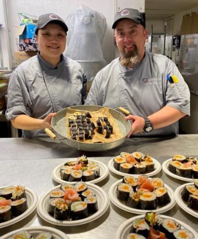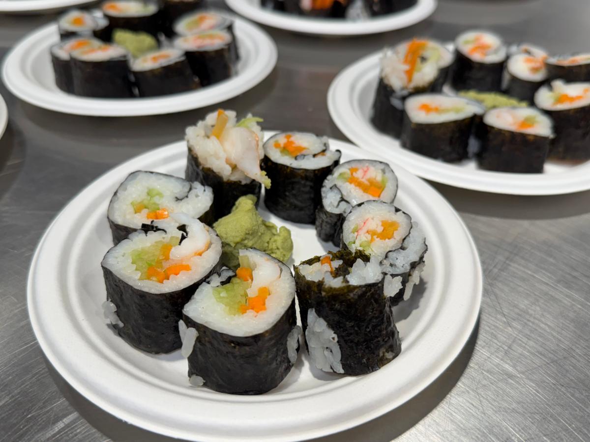 Bonnici—“who is our biggest fan,” says Torri Hieber, director of dining services—“had asked for us to make the sushi and fried rice for the students who will be attending the trip. She wants them to connect with each other before the trip, and what better way than over food?”