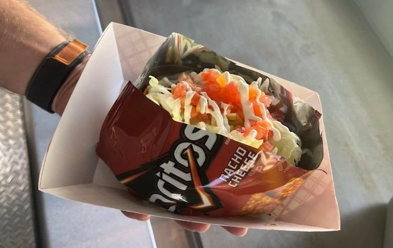 Servings number about 160, mostly at the truck. It's not a new item, Redd says, and it is traditionally made with Fritos Corn Chips. Cathedral Catholic’s version also drew inspiration from Taco Bell’s Nacho Cheese Doritos Locos Taco (and even Subway has its own foot-long variety).