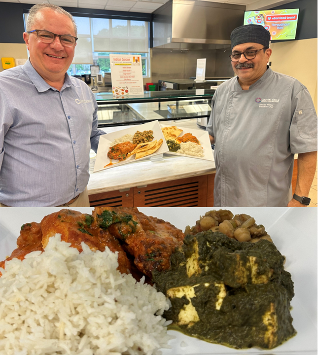 | | | Enrollment open for Culinary Development Program | Enrollment is now open for CDP, a two-tiered skills and standards-based development program. Tier 1 is designed for front-line cooks looking to grow their career to sous chef, while Tier 2 is designed for sous chefs eyeing positions as executive chef or chef manager. CDP takes 12 months to complete, includes mentorship, and involves monthly calls with various subject matter experts. Contact Richard Brown for more information or click here to enroll. | | YES, I YAM: Yes, that’s none other than CulinArt’s very own Jen Espada, shown holding bags of donated food (below, left) and the camera (below, right) for a selfie with Flik DEI Director Trudi Halliman (left) and Cynthia Lopez, catering manager for RA. The trio spent a recent Friday volunteering at New York Common Pantry, a nonprofit striving to reduce hunger while promoting dignity, health, and self-sufficiency, bagging up donated foods for use in combating food insecurity in the country’s most populous city, all as part of Inclusion & Impact Month. Items included fresh fruits and vegetables, canned vegetables, dried beans, rice and pasta, packaged cakes, and more. Other volunteers included associates of Flik, Restaurant Associates, Eurest/ESFM, and Compass One. | | Chef Srinivas Reddy is once again making the rounds of CulinArt accounts as a guest chef, bringing his expertise and the unique flavors of Indian cuisine to customers in multiple market segments. | | | Sites have included Baldor Foods (where Chef Reddy paused for a quick pic, above), Fountaingate Gardens, and Stony Brook School, with more dates upcoming. Chef Reddy’s dishes have included Tandoori Roast Chicken, Lamb Korma, Rajma Masala, Aloo Matar, and mainstays such as Basmati Rice Pilaf, Vegetable Samosas, and Naan. | | | | At Stony Brook School in early May, “Chef Reddy hit it out of the park!” exclaimed Carlos Rivera, director of dining services. “From the minute we opened, the lines were pouring in. Chef Reddy's aromatics of the Indian cuisine he prepared had just permeated throughout the whole building. Students were coming in and saying, ‘I knew that was Butter Chicken!’” Also on the menu were Chana Masala, Saag Paneer, and Rice Kheer, a creamy sweet rice pudding made with dried fruits, cardamon, and saffron. | | Regional Executive Chef Gerardo Calderon (center) also recently stopped by Stony Brook School to present an offering of Dominican cuisine, namely Pork Pernil, Pollo Guisado (Chicken Stew), Arroz con Gandules (Rice with Pigeon Peas), and Mangu (Smashed Plantains). Calderon is shown here with Rivera and Ivan Rodriguez, executive chef at Stony Brook School. “The students enjoyed this Hispanic cuisine,” Calderon says, “but they enjoyed the dessert more—Arroz con Leche. They love to try new things.” | | | | | Back at Baldor, Chef Isaiah Haughton (left), on loan from his regular gig as chef at St. Francis College, brought two Caribbean dishes to the servery: Rasta Pasta, Stewed Green Cabbage, and Fried Sweet Plantains; and Jerk Chicken with Pineapple Salsa, Stewed Green Cabbage and Rice and Peas. “We have a very large portion of our employee base from the Caribbean,” says Marty Weil, director of dining services, “so they really enjoyed the menu.”—to the tune of about 200 Jerk Chicken dishes and about 150 of the Rasta Pasta. | | Baldor’s executive chef Josh Moulton (above, at right, with Chef Isaiah, and opposite at right) lends expert support to the chefs when they visit. Here, Chef Manager Nick Apostolakos and Moulton review the dishes Chef Nick prepared for a recent Greek Cuisine special: Cretan Shallow Poached Salmon, Hellenic Greek Garden Spinning Salad, and Spartan Roasted Chicken. Unlike the experience with the Caribbean food (above), “We do not have large Greek population here,” Weil says, “but the office staff really enjoyed the Greek food.” | | | School is nearly out, if not completely done, in the independent school realm, but it is never too early to start thinking about next year and jumping on trends that might keep your customers’ interest piqued. | | | |