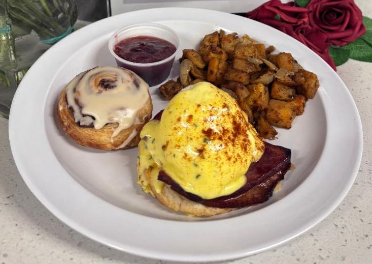Croissants, cinnamon rolls with maple glaze, breakfast potatoes, and strawberry Jalapeno jam rounded out their Run for the Roses menu.