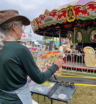 Photo: Artist Linda Ross Gallagher painting at the Acton Fall Fair, 2024.