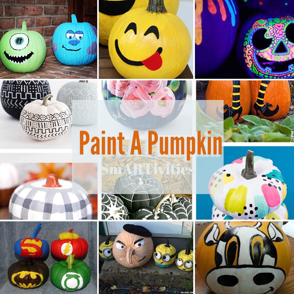 Paint a Pumpkin with SmARTivities this Saturday! Pick your own farm fresh pumpkin and get creative with stencils and even glow-in-the-dark paints! Tote bags and ceramic pumpkins also available- only $10 each!