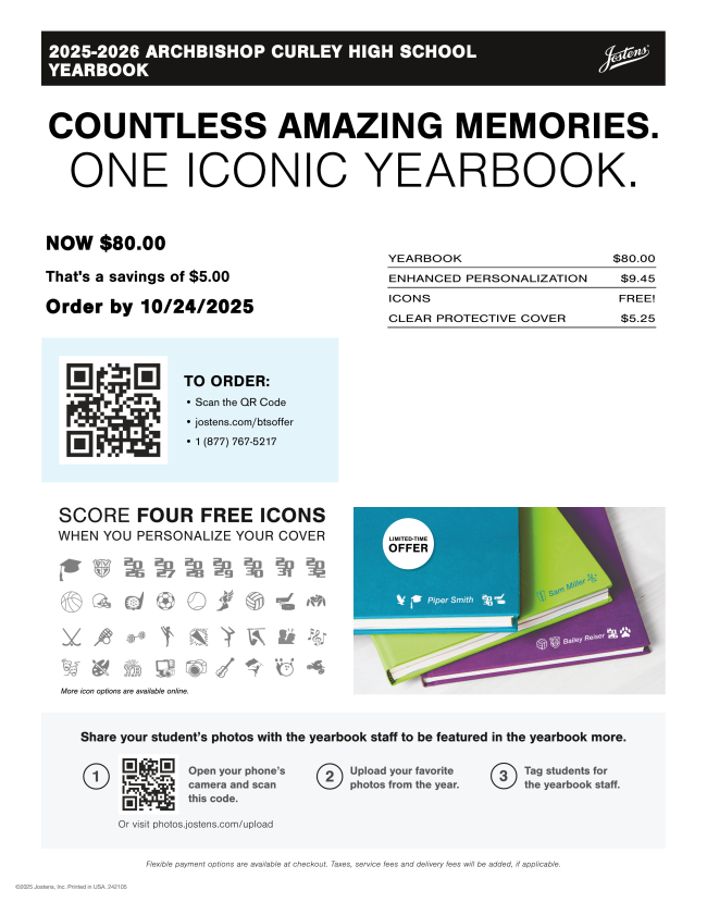 It is also the time of year that we ask our families to take advantage and research any external scholarships for the 2026-2027 school year. You can find this information on the Curley website under the Tuition, Scholarships & Financial Aid tab. Don’t miss out on any external scholarship opportunities since each one may have specific application deadlines. If you have any questions, please contact Cris Wilson at cwilson@archbishopcurley.org.