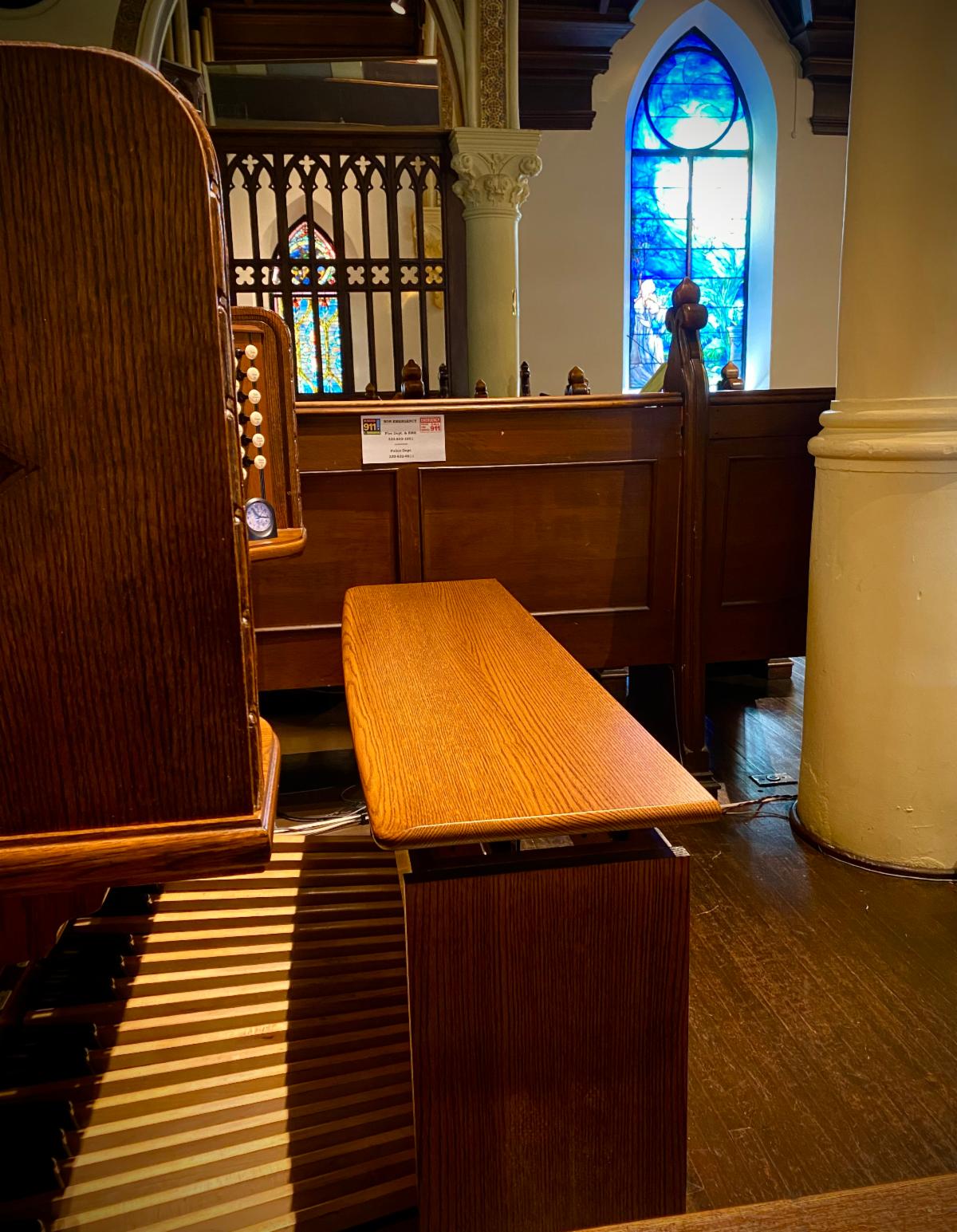And speaking of organ concerts, long-time observers of our fine instrument will have noted that we adjusted the height using a high-tech process called "wooden shims," (aka, 2x4s).