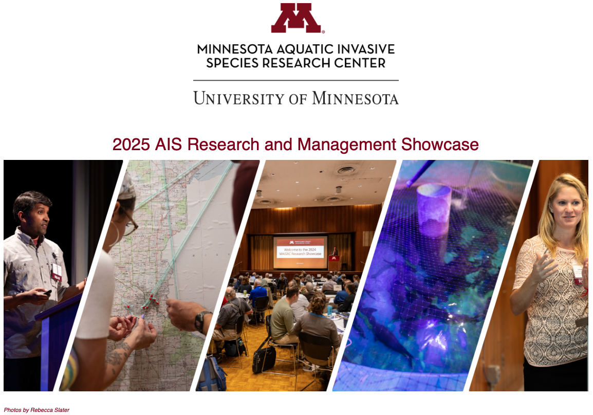 The University of Minnesota AIS Research and Management Showcase is an annual event that highlights the latest MAISRC research, innovations, and strategies for managing aquatic invasive species in Minnesota. The one-day showcase provides a platform for scientists, natural resource managers, and the public to learn about cutting-edge research, engage in discussions, and collaborate on efforts to prevent and control AIS. Attendees can participate in presentations, demonstrations, and tour MAISRC's containment lab to see some research projects up close.
