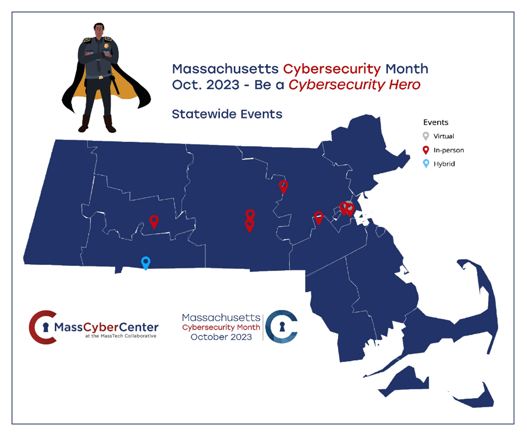 The theme of the 2023 Massachusetts Cybersecurity Month was "Be A Cybersecurity Hero”. This theme highlights cybersecurity best practices in everyday life and rewarding careers in the cybersecurity industry and reminds citizens that they too can become Cybersecurity Heroes. Click here to learn more about the “Be A Cybersecurity Hero” public service announcement.