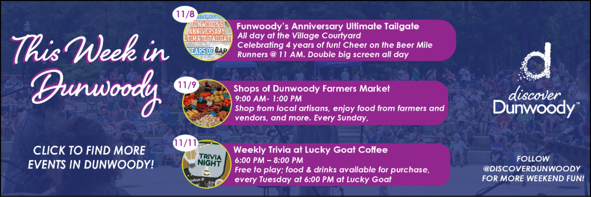 Nov. 8: Dunwoody Village Courtyard (Bar{n}), 11 a.m. - 1 p.m.
