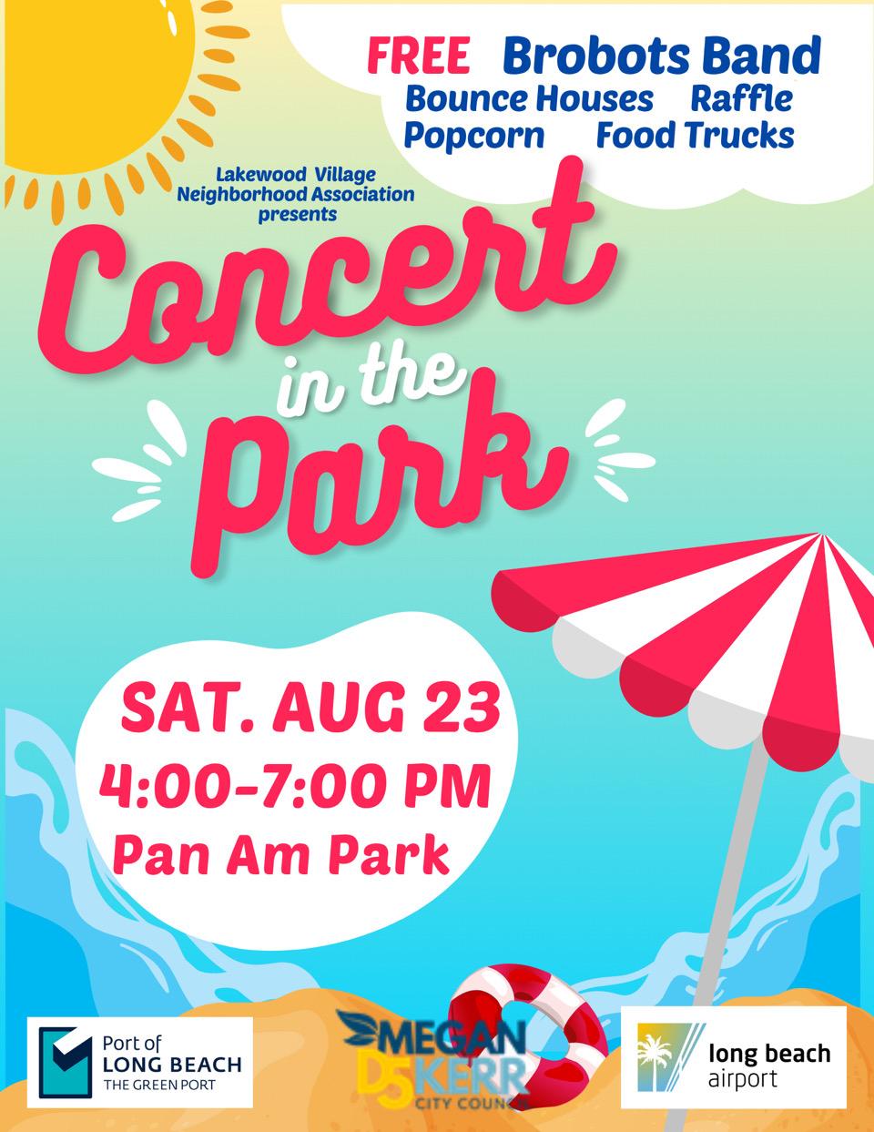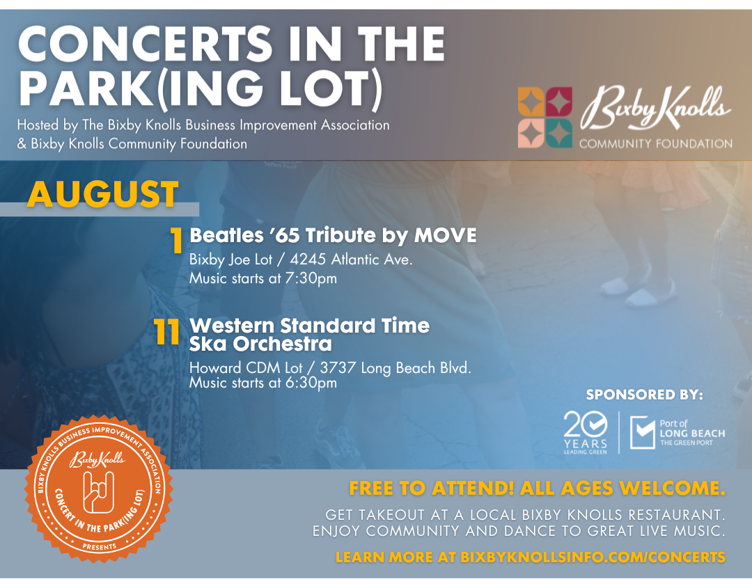 As we move into next week, enjoy some of the last summer outdoor concerts of the season! The final BKBIA Concert in the Park(ing Lot) will be on Mon., Aug. 11th at 6:30pm, this time at the Howard CDM Lot on Long Beach Blvd.; and the last Concert in the Park at Los Cerritos Park hosted by the Los Cerritos Neighborhood Association will be on Wed., Aug. 13th at 6pm; in partnership with LBCC, our CD5 office’s own 3rd Annual Discover LBCC Concert, featuring local favorite Knyght Ryder, will be next Fri., Aug. 15th from 5 – 8pm; finally the Lakewood Village Neighborhood Association (LVNA) will once again be holding their annual Summer Concert at Pan American Park on Sat., Aug. 23 from 4 – 7pm; bring your lawn chairs and we hope to see you there!