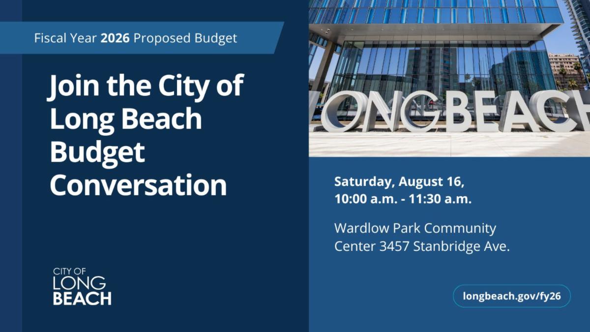 I encourage the community to engage in the budget process by attending a community meeting this August, to learn what is included in the Proposed FY26 Budget, how input from community meetings in January and February was used to inform the Budget, and how the public can continue to participate in the budget process. The full schedule and details can be found at longbeach.gov/FY26, but note that the following meeting will be located in CD5