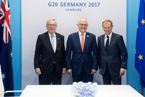 Trade and global security were on the agenda in Hamburg in the margins of the G20 summit when Australian Prime Minister Malcolm Turnbull had a trilateral meeting with the President of the European Council, Donald Tusk, and the President of the European Commission, Jean-Claude Juncker. President Tusk tweeted after the meeting, ''agreed with PM Turnbull to accelerate work towards EU-Australia FTA as a priority''. Meanwhile, the European Commission's Chief Spokesman, Margaritis Schinas, touched on foreign relations in his twitter coverage of the meeting, "@JunckerEU @eucopresident meet PM @TurnbullMalcolm. EU and #Australia strategic partners in the global agenda. #G20". The EU's leaders, together with Australia, were firmly united in the implementation of the Paris agreement despite the recent US decision. Leaders also reached consensus on the fight against terrorism as well as women's empowerment and promoting digitalisation.