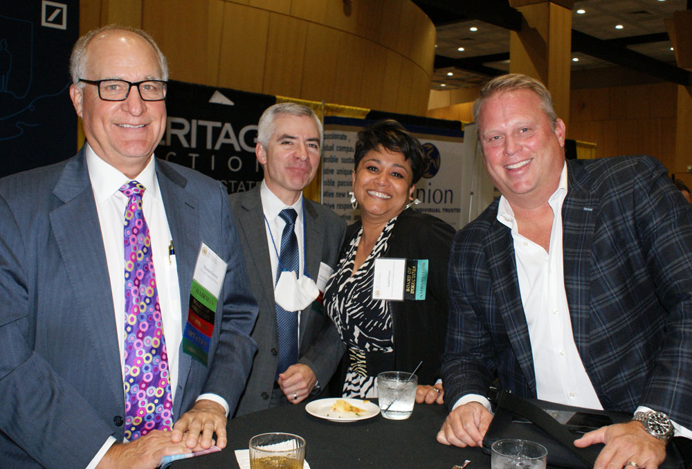 Tom Forrest, Mark Oller, Isabel Pryor, and Gregg Homan enjoy the reception at the 2021 Delaware Trust Conference. The reception is over, but you can still experience