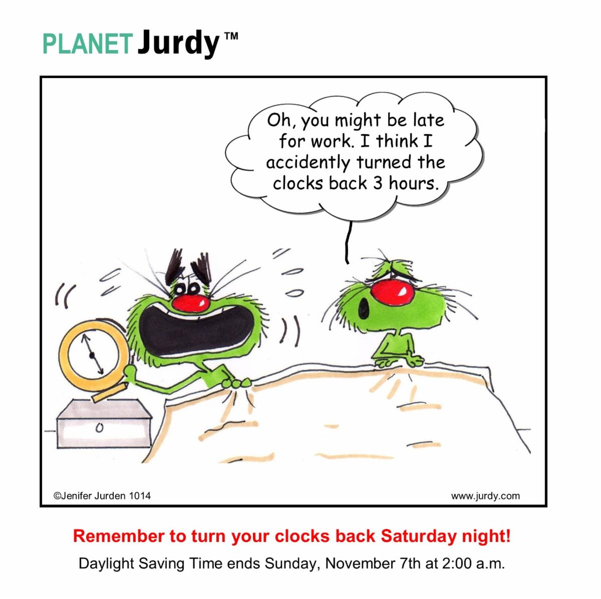 Jenifer Jurden is a Cartoonist from Wilmington who has graciously provided her Planet Jurdy cartoons for the DBA Digest. Jurdy® is her other-worldly "Hero of Happyness" whose cartoons bring levity to humans worldwide.
