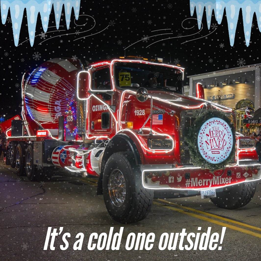 | | | Ozinga's Merry Mixer is ready to roll this holiday season! They've decked out one of their signature red-and-white striped mixers with more than 32,000 programmed lights. This dazzling display features animated light sequences and toe-tapping renditions of your favorite Christmas tunes. So, you better watch out, because The Merry Mixer is coming to a town near you. | |