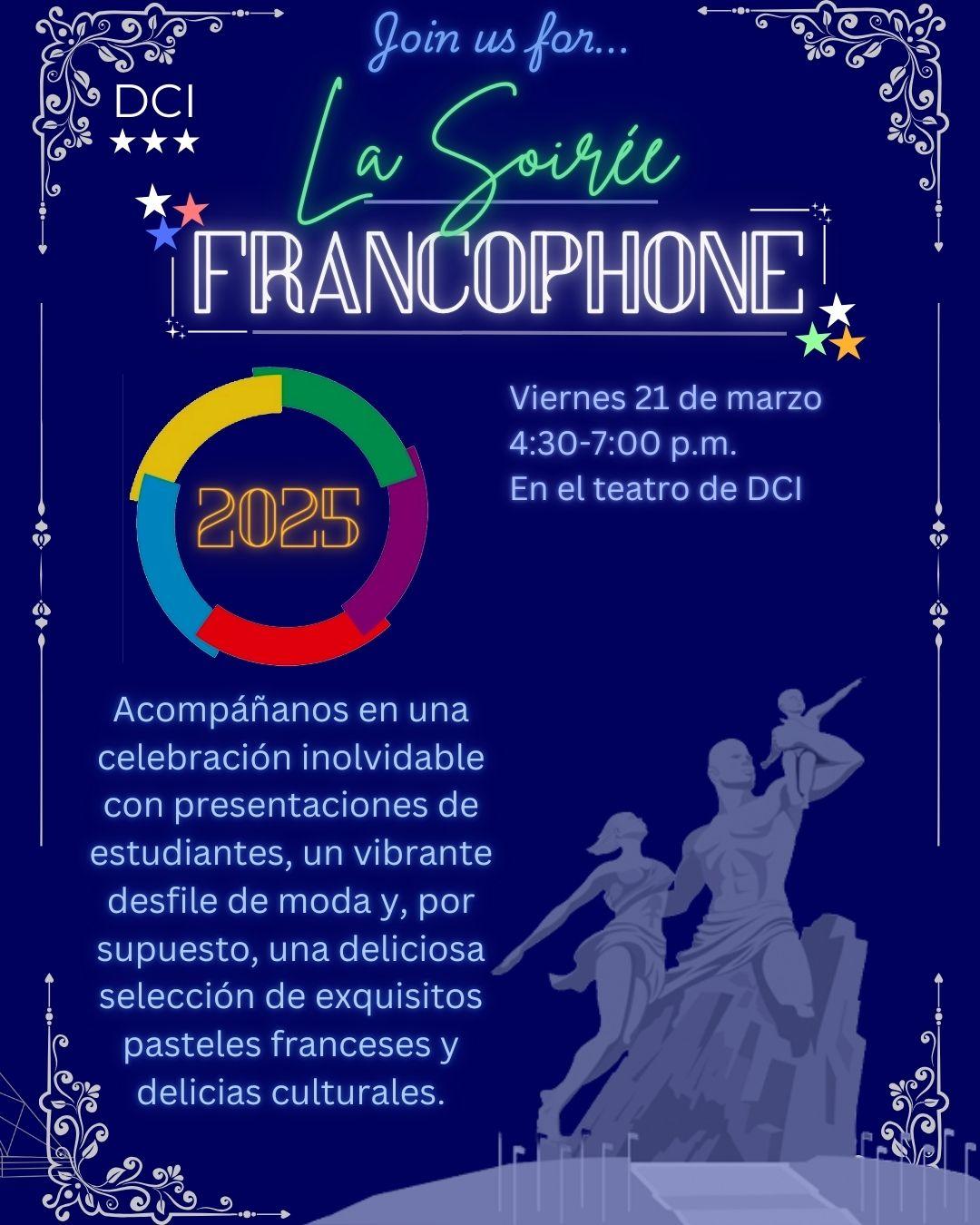 Hoy es oficialmente el primer día de primavera y mientras entramos en esta nueva temporada, también comenzamos nuestras celebraciones y momentos importantes. Nos estamos preparando para las vacaciones de primavera (14-18 de abril), con exámenes, promociones y graduación también en el horizonte. Para dar inicio a la temporada, celebraremos nuestra anual La Soirée Francophone mañana, viernes 21 de marzo – nuestra tercera celebración cultural alineada con nuestras tres vías de idiomas y el pilar estratégico de "idioma en el centro". ¡Únete a nosotros de 4:30 a 7:00 p.m. para presentaciones estudiantiles, un desfile de moda, exhibiciones de tradiciones culinarias y culturales francófonas y, por supuesto, comida deliciosa! Valoramos mucho la diversidad cultural de nuestra comunidad escolar y esta es solo una oportunidad estacional para conocer e interactuar con nuestro programa de idioma francés y disfrutar de tradiciones anuales.