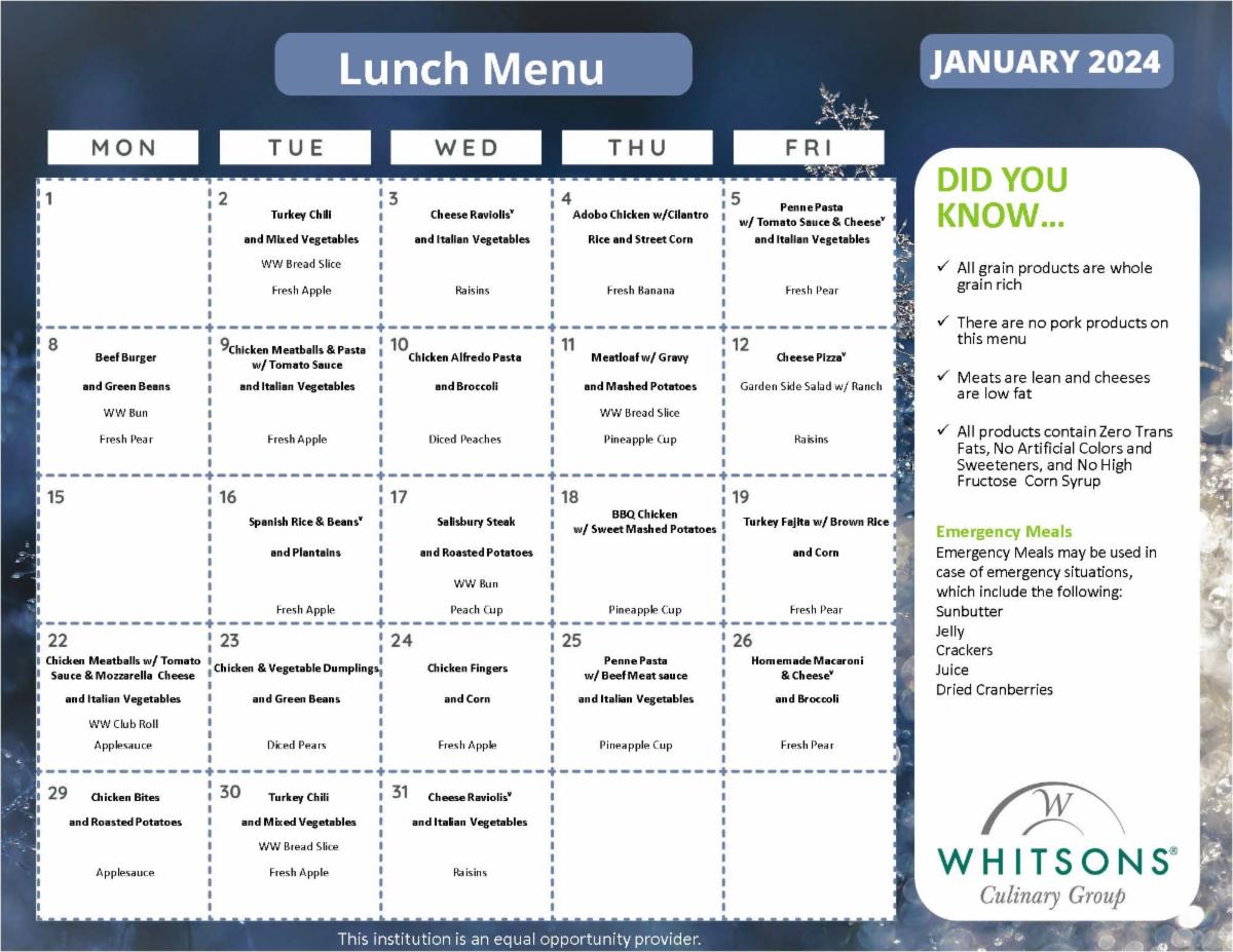 Lunch Menu for Aston, CTE, Madison, CTR, and Sharon HIll | |