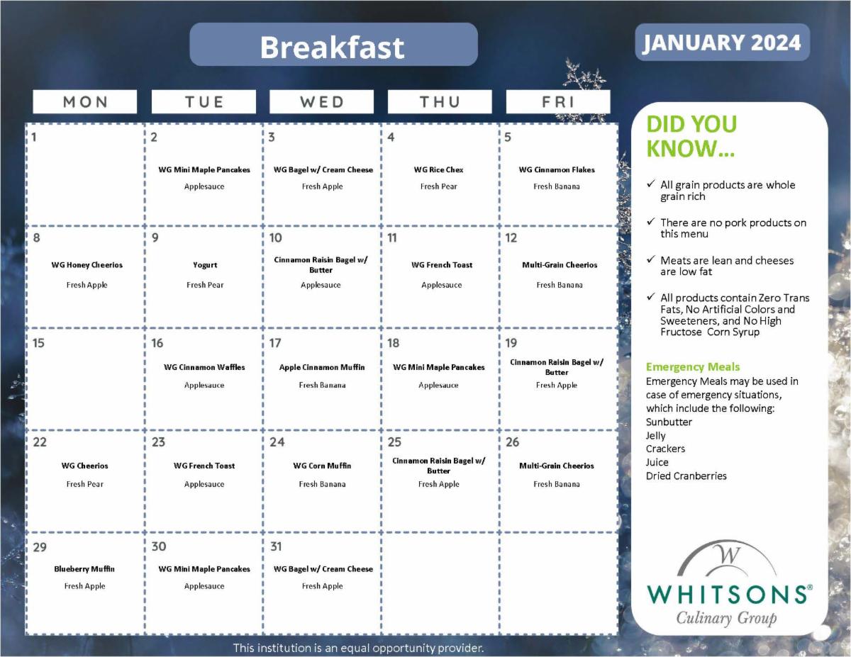 Breakfast Menu for Aston, CTE, Madison, CTR, and Sharon Hill | |