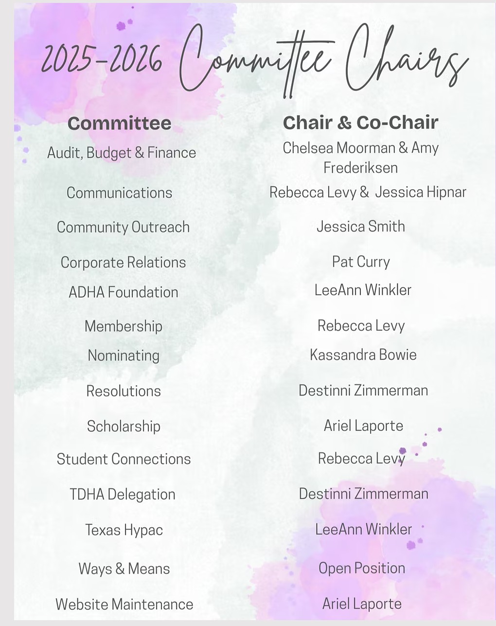 If you're interested in becoming more involved with DDHA, whether it is by becoming an officer or assisting on a committee, please reach out to your President, Ariel Laporte, at