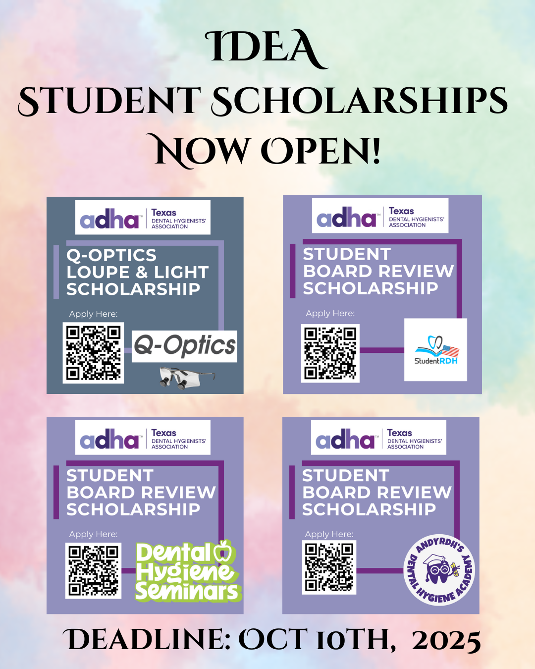 Lastly, there are several student and professional scholarships being offered by the TDHA IDEA Committee, and TDHA's scholarships will be opening Oct 1st! Visit the website or social media profiles for more!
