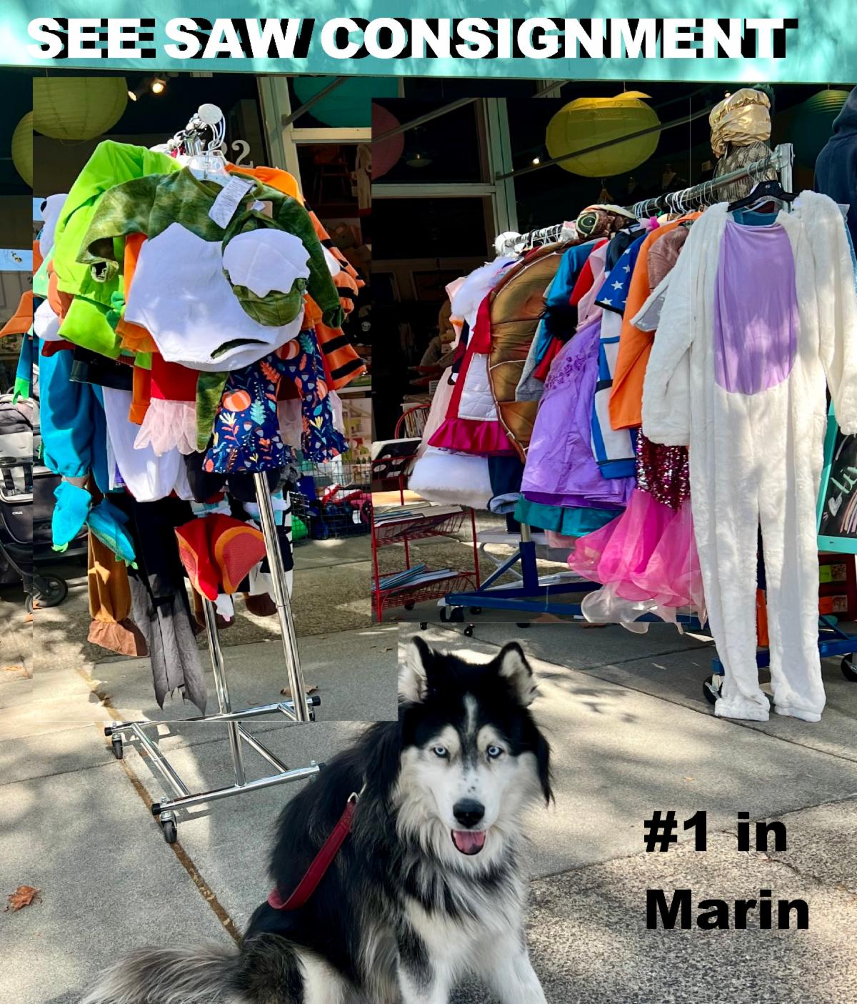 KIDS' COSTUMES HQ: See-Saw Consignment | Looking for Halloween Costumes for the kids? Check out our neighbors at See Saw Consignment. They have racks of fun costumes and things to make costumes, plus regular daily, school, winter, and snow gear for the upcoming season. Always voted #1 kids' consignment store in Marin. Visit See Saw at 722 San Anselmo Ave. CLICK HERE TO VISIT SEE SAW CONSIGNMENT | | |