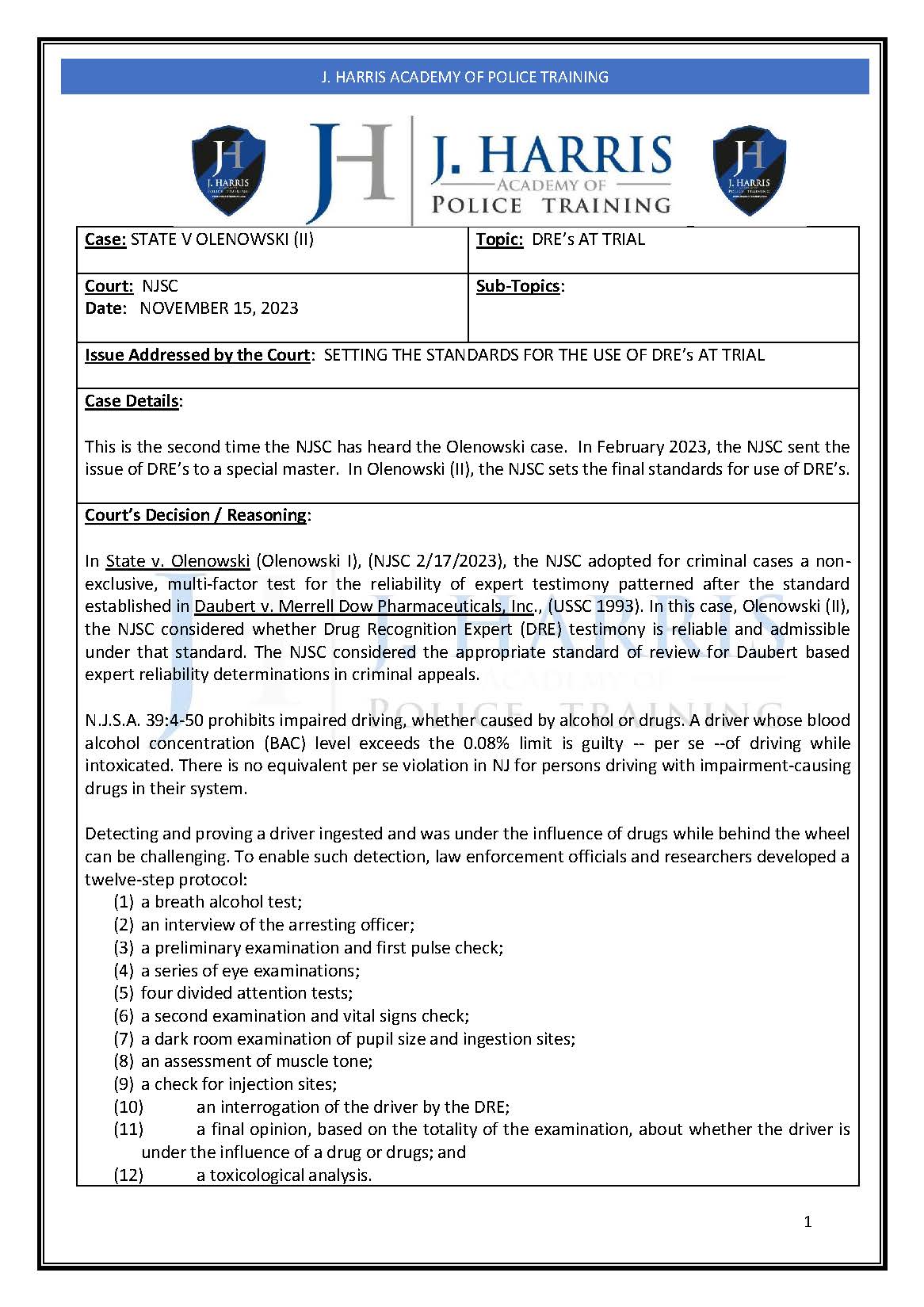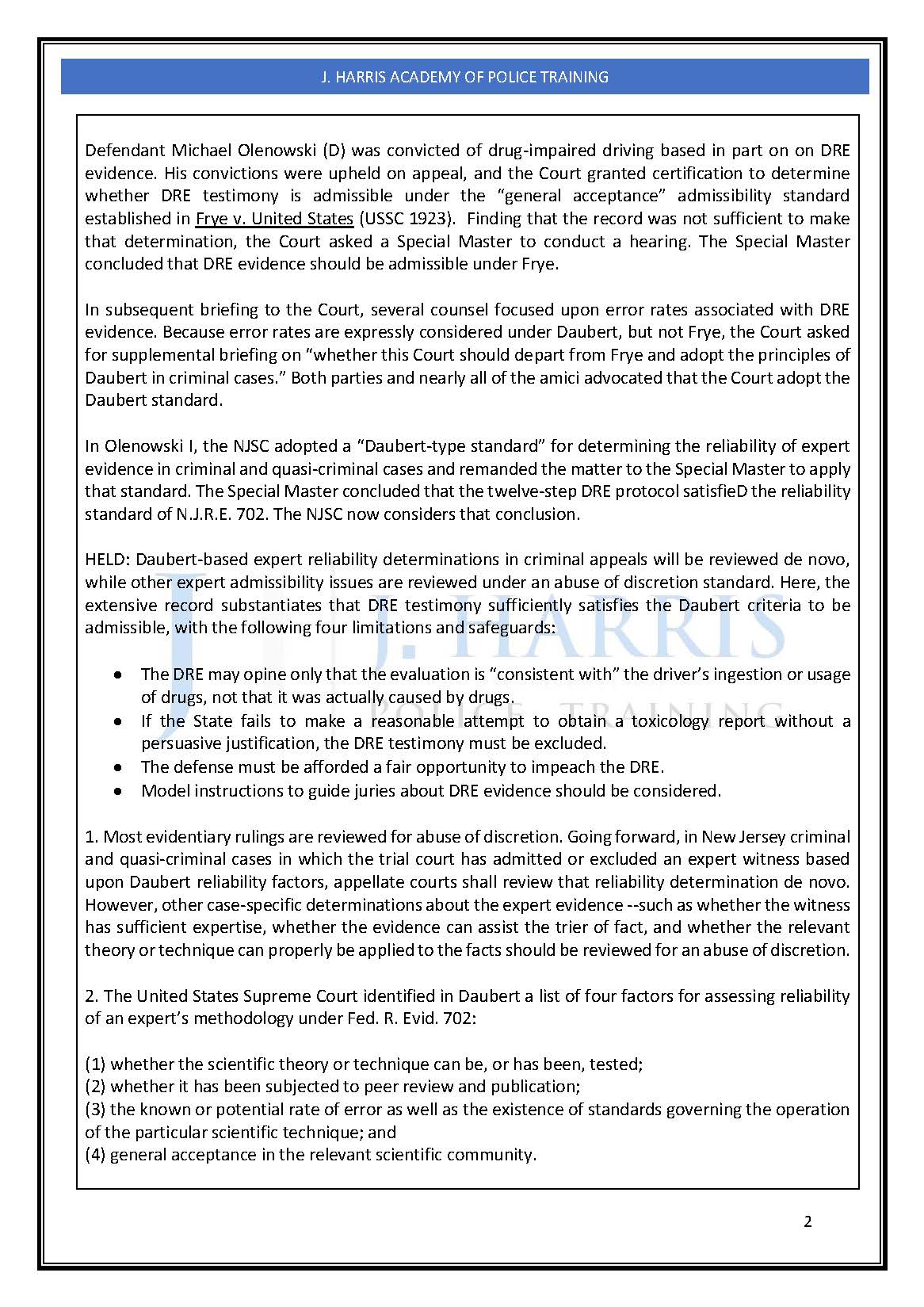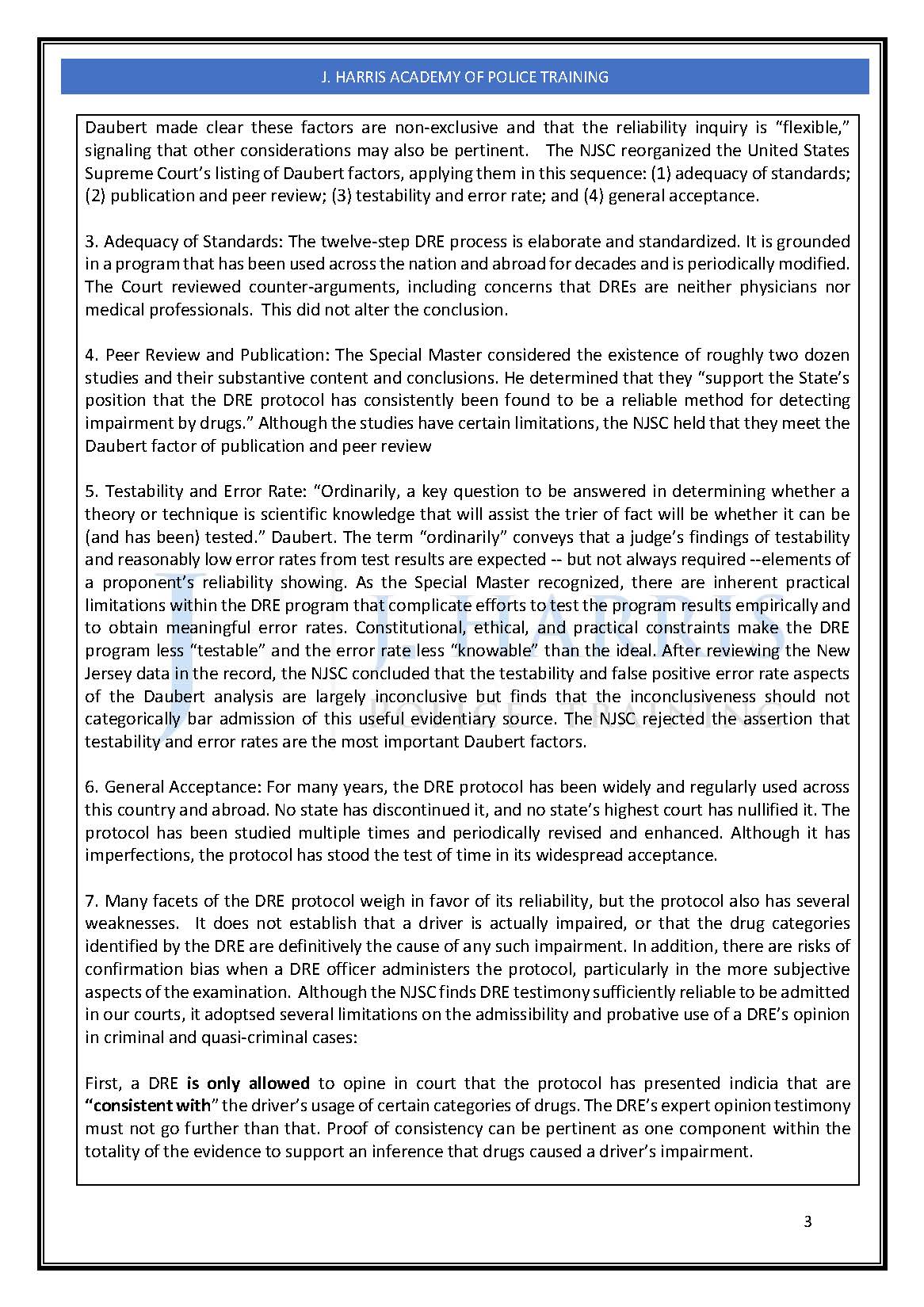 Drug Recognition Standards for Expert Witness Testimony