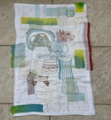 There have been two courses one with Drusilla Cole on Printing and the other was with Dorothy Tucker, an on-line course, where the students had a couple of months to finish their Kantha pieces.