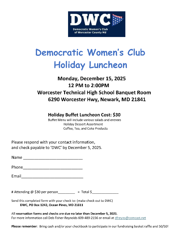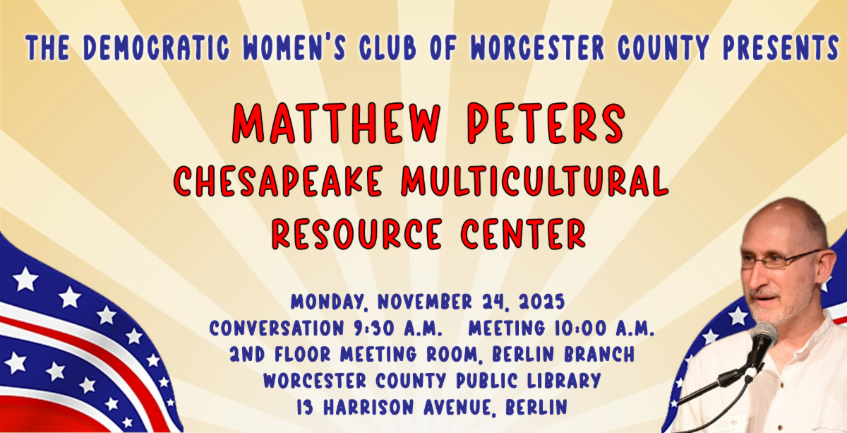 Speaker/Singer: Roxie Dennis, Chair of the Worcester County Democratic Central Committee