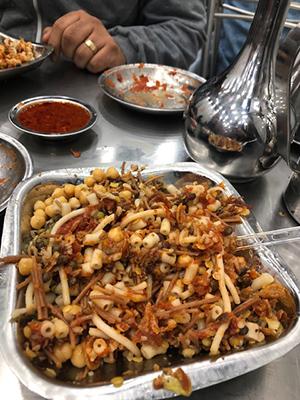 -- not so clean and animals wandering around (particularly cats which are sort of sacred in Egypt) -- but most of the food was delicious. Their basic dish is a 'mixed grill' which includes chicken, beef and/or lamb. Always a salad, always some sort of soup, a tahini sauce, and freshly made pita bread. We had this dish that looks like a mess (See photo at right) but was actually delicious. I don't recall the name of it, but it is a local favorite.