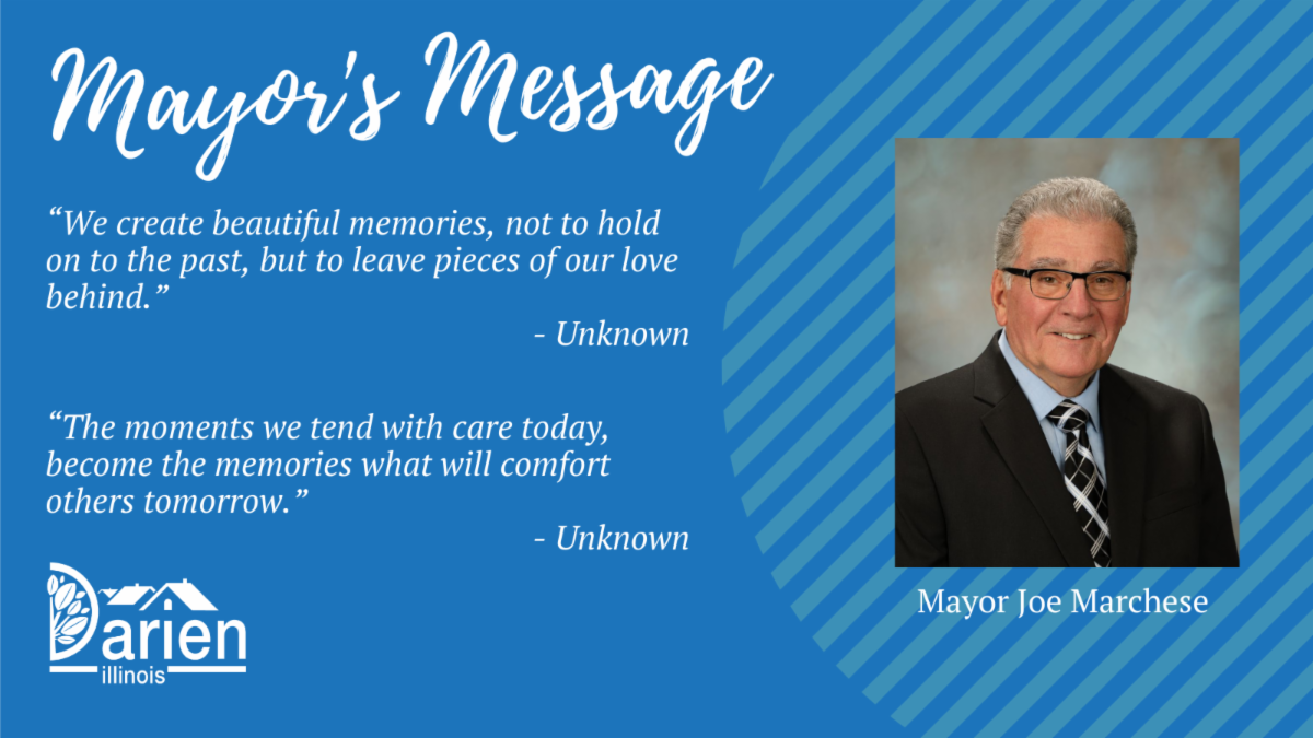For all the young families that are building new traditions, always remember, that life is about creating beautiful memories that will be there, years from now, when certain loved ones have passed on in life. Because of this, be intentional about the memories you create; give your love freely, show up fully, and savor small moments that one day mean more than you might really know. For all of you, may this holiday season of 2025 – 2026 provide you with joy and happiness as well as a brief reprieve from the problems of our world. Create beautiful memories that feel safe, kind and genuine, and have a joyous New Years from all of us at the City of Darien.
