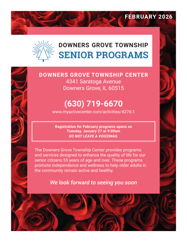 Check out the Downers Grove Township February 2026 Senior Programs Newsletter for information on their upcoming events!