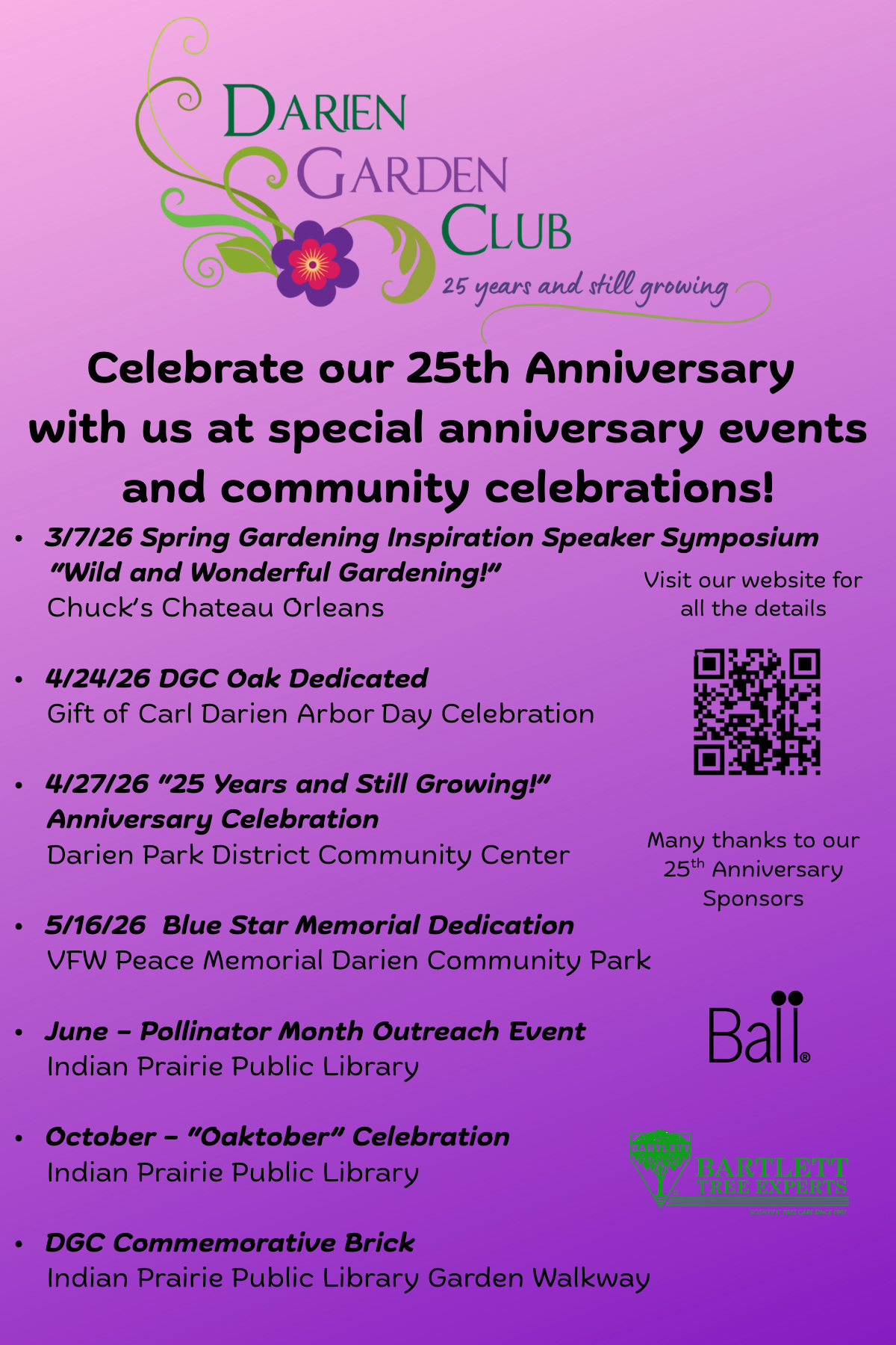 The Darien Garden Club is celebrating the organization's 25th Anniversary. They are offering a number of special events throughout this year commemorating this milestone. Mark your calendars and join the fun!