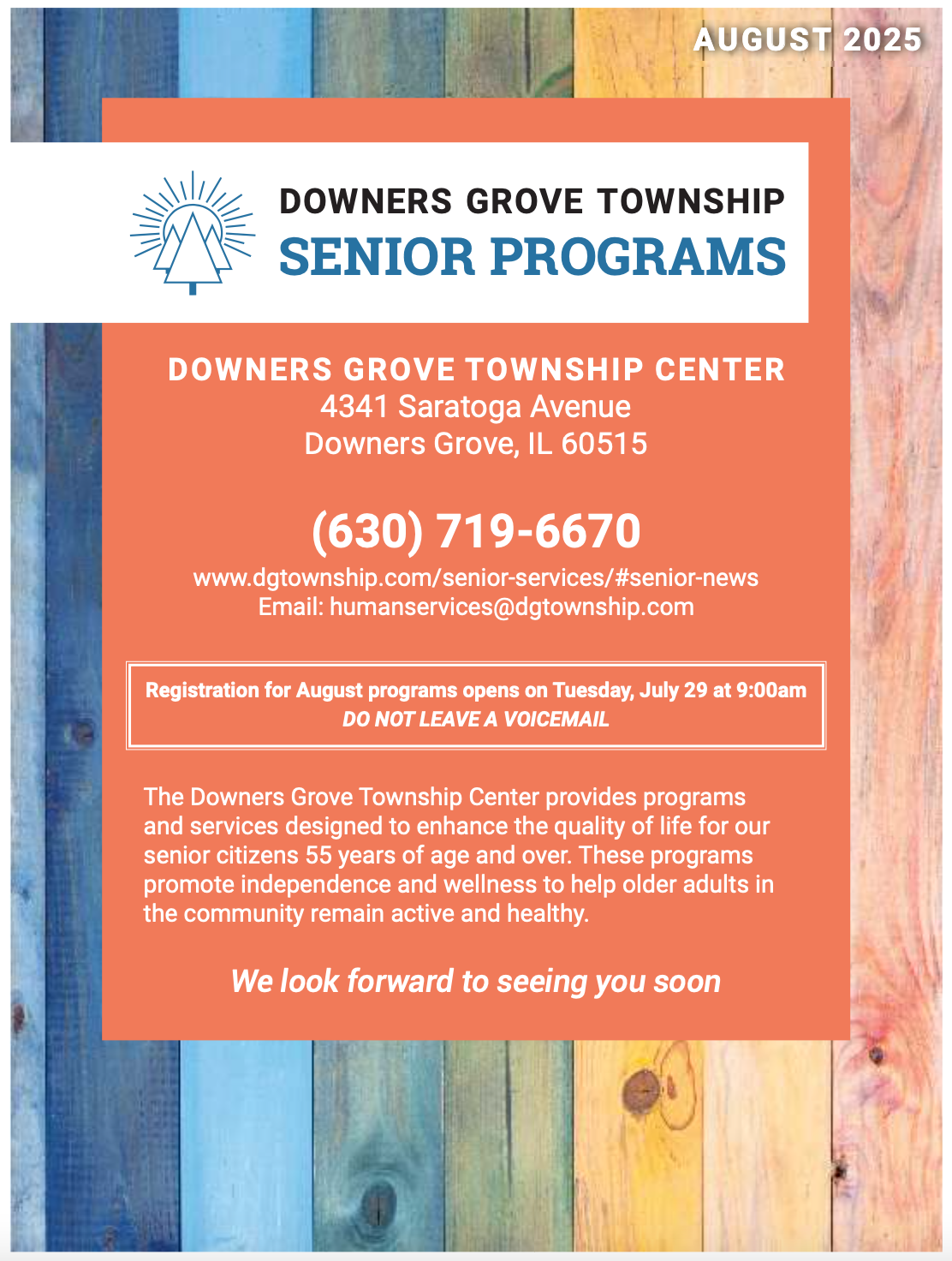 The Downers Grove Township Center provides programs and services designed to enhance the quality of life for our senior citizens 55 years of age and over. These programs promote independence and wellness to help older adults in the community remain active and healthy.