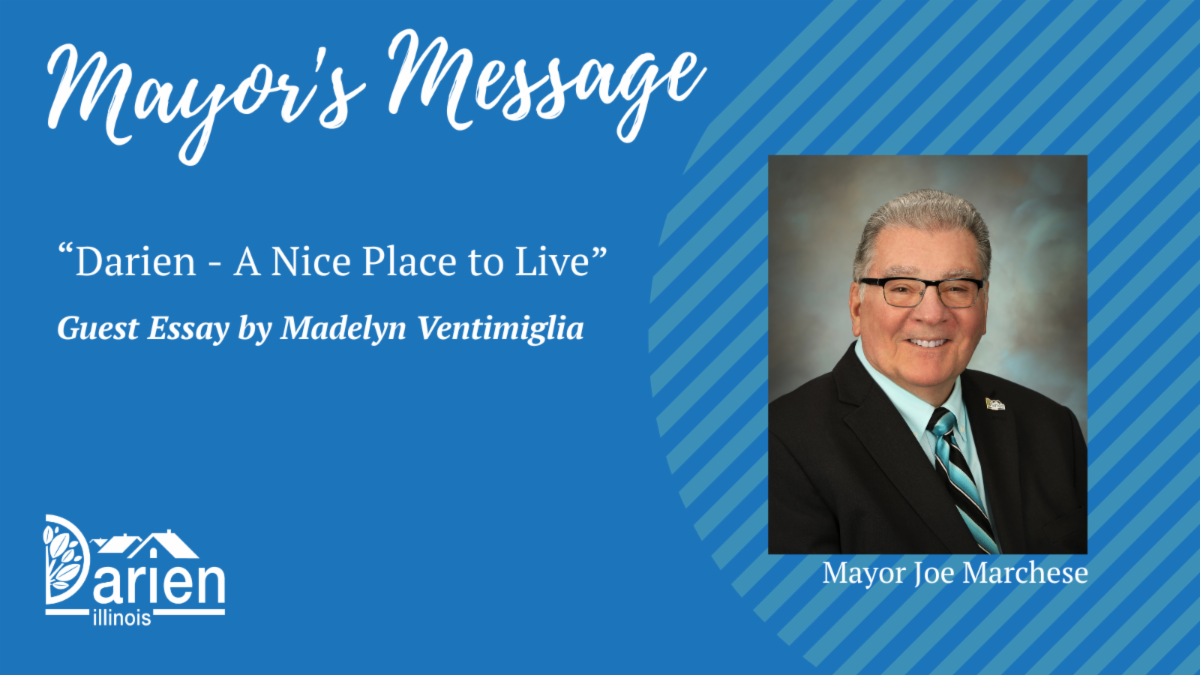 This article was written by Madelyn Ventimiglia, a student at Miami of Ohio and a Darien resident. In this essay, Madelyn clearly states her love for the Darien community, and a strong rationale for why we say Darien is a “Nice Place to Live.” I want to thank her for allowing us to use her essay in our Direct Connect newsletter.