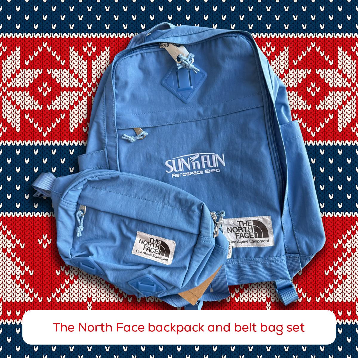 Today’s gift: The North Face Backpack & Belt Bag Set — The perfect duo for travel, adventure, and your upcoming trip to SUN ‘n FUN!