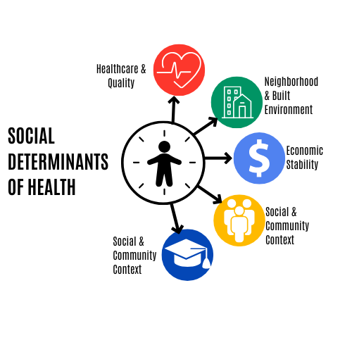Conditions in the environment where people are born, live, learn, work, play, worship, and age affect a wide range of health, functioning, and quality-of-life outcomes and risks.These social determinants of health are screened for and addressed to improve overall health outcomes.