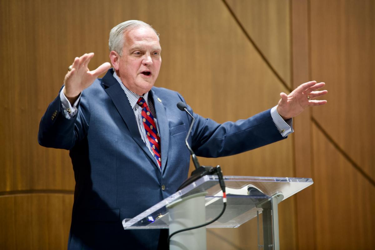 Fire code for the Center allows no more than 550, and heading into the evening, we were a few above that number. But a few “no-shows” enabled us to conform to fire code standards, and the evening proceeded smoothly. Dr. Mohler delivered a plenary address and then entertained questions from our moderator and a few members of the audience. He concluded the evening by graciously signing copies of his books outside the banquet hall.