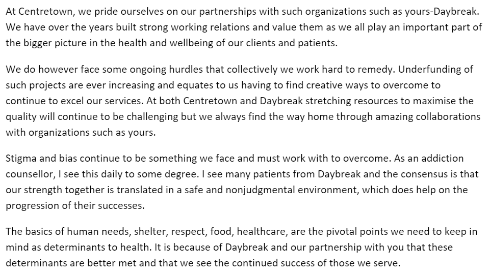 Emma is eager to learn about the most vulnerable populations as well as understand the processes for housing these individuals. Emma is excited to help the men and women of the Ottawa community rebuild their lives through Daybreak.